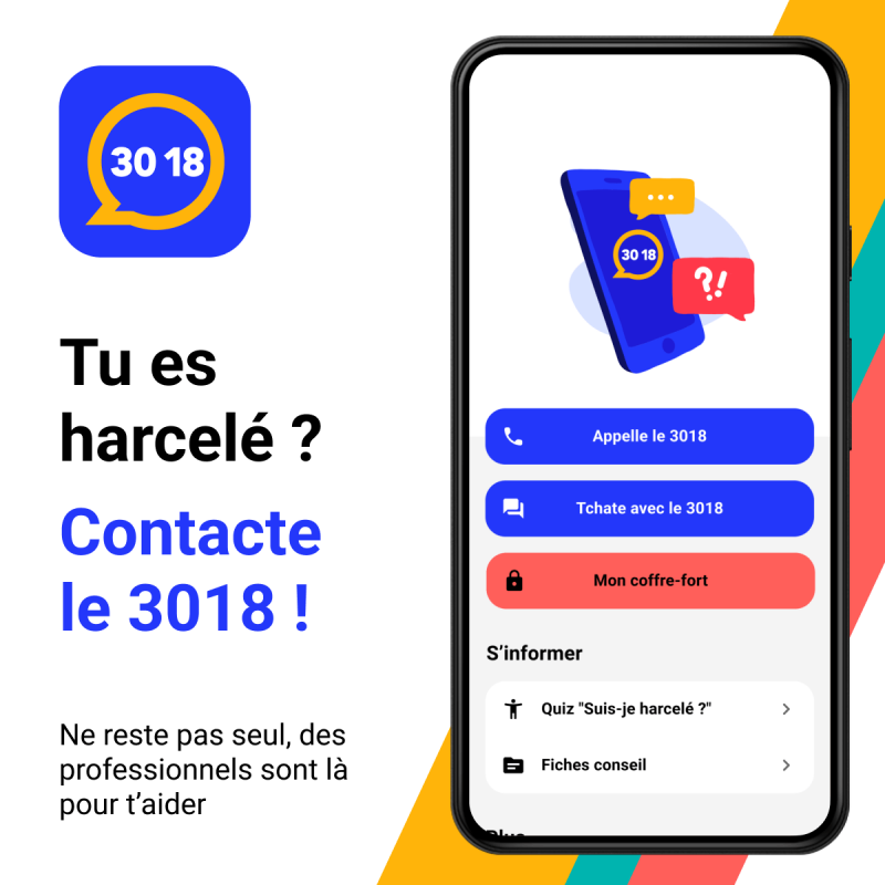 Tu peux aussi contacter le 3018, le numéro unique pour parler du harcèlement et du cyberharcèlement.